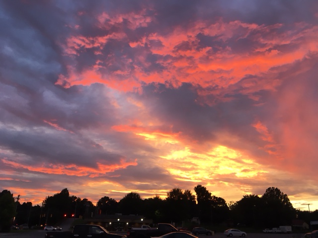 I was coming out of the grocery store recently and saw a double rainbow briefly shining to the east as a late evening shower caught the falling droplets just right. To the west, the setting sun cast brilliant color through the clouds. How beautiful!